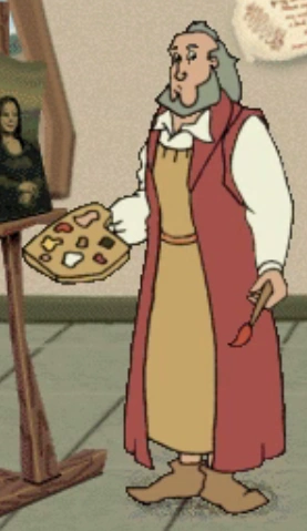 Leonardo is unable to get Mona Lisa (his model) to smile after his notebooks were stolen. Carmen Sandiego's thief built a "Jester Machine" using da Vinci's spare machine parts, but the thief damaged the machine during his escape. The player must help fix the machine by placing the missing machine parts in their proper places.